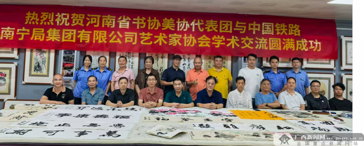 南宁8月20日讯(通讯员 杨燕李嘉蒙荣顺)8月18日,南铁文化宫翰墨飘香、情谊融融。“河南省书协美协代表团与中国铁路南宁局集团有限公司艺术家协会学术交流会”在此成功举行。本次活动由南宁局集团公司南铁文化宫和艺术家协会主办,为河南与广西两地书画艺术交流搭建了桥梁,有力促进了铁路文化与地方艺术的深度融合。